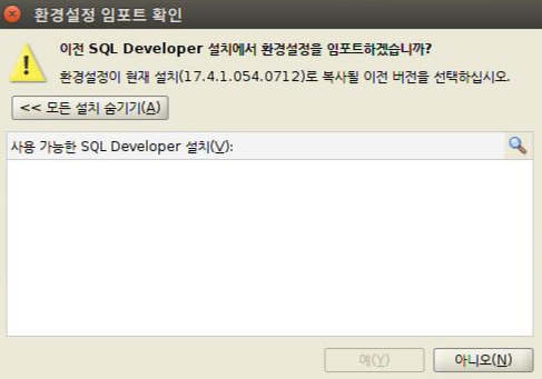 환경설정을 가져올 일이 없다면 아니요 를 선택하면 설치가 되고 SQL Developer를 사용 할수 있다.